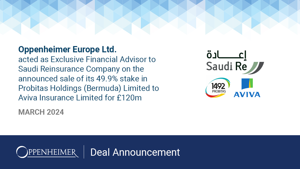 On 3rd March 2024, Saudi Reinsurance Company (“Saudi Re”) signed a definitive agreement to sell its entire 49.9% stake in Probitas1 to Aviva Insurance Limited, a subsidiary of Aviva plc, for a fixed consideration of £120m2.